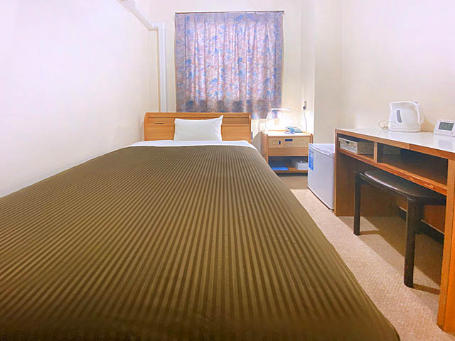 お一人でゆっくりと落ち着ける、ほどよい広さのお部屋です。 大きめの机とイスがございますので、ご出張の際はビジネスディスクとしてお使い頂けます。