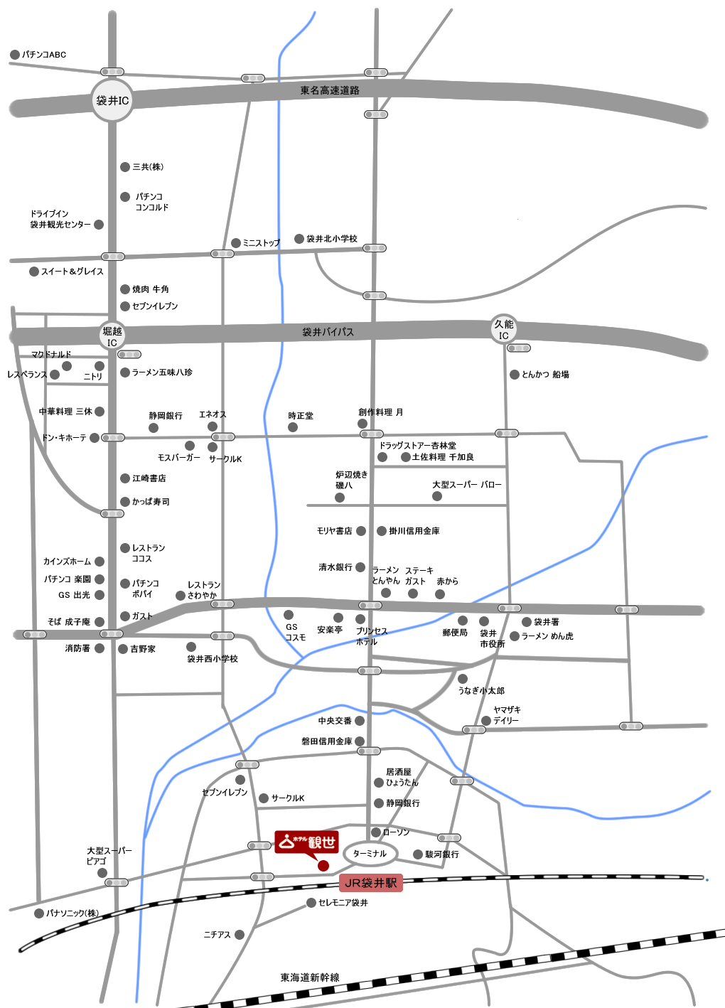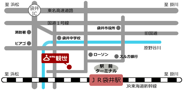 袋井駅から徒歩1分(83歩)! ホテル観世へのアクセス