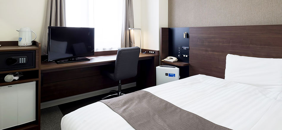 1名でのご利用はもちろん、ご家族やカップルのお客様にもおすすめです。ダブルサイズのベッドを