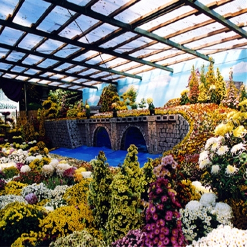 | 毎年異なるテーマの「風景花壇」。芸術的な作品は目玉の一つ。 |