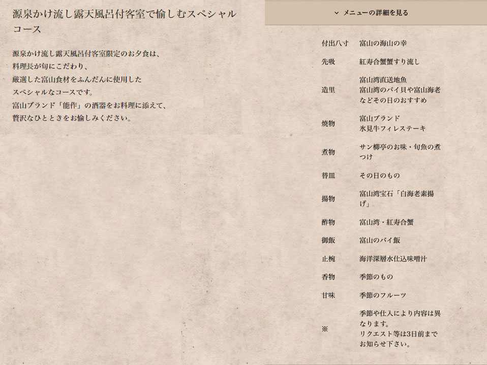 温泉露天風呂付客室限定メニュー
