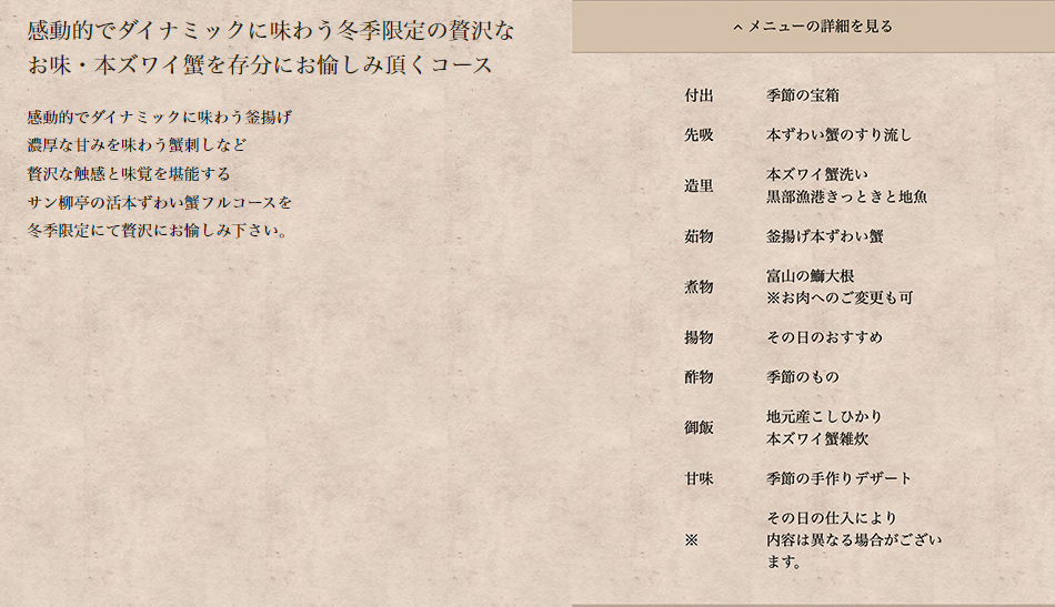 冬の贅沢・富山湾の王様『本ずわい蟹』を堪能~最高級活本ズワイ蟹プラン
