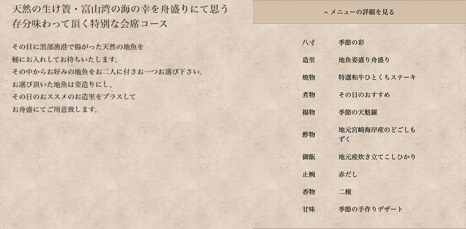 天然の生け簀“富山湾直送”の地魚を選ぶご当地グルメ会席
