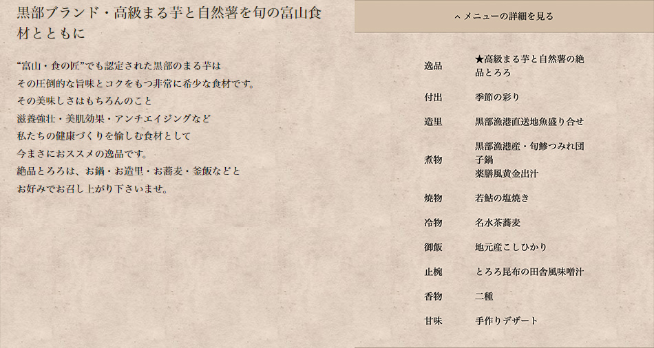 “究極の美味しい免疫力&美肌効果”高級自然薯と黒部まる芋とろろを旬の食材とともに