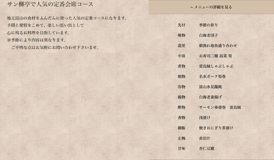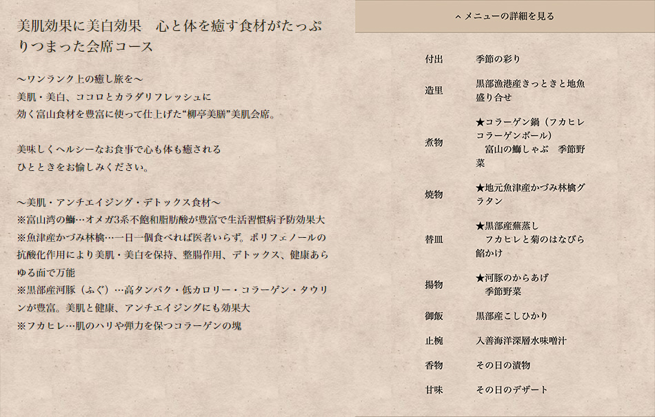 美肌&心と身体もデトックス“柳亭美膳”美肌会席コース