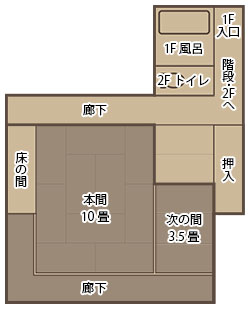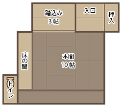 離れ「山道」「三亭」「明星」の中で一番広いお部屋です。太い大きな床柱が特徴です。内湯は温泉掛け流しです。