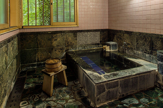 本館の一番高い所にあるお部屋です。内湯は温泉掛け流しです。