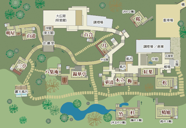 当館で一番大きな離れです。大きな広縁から「華清園」を見渡せます。温泉掛け流しが2ヶ所あります。