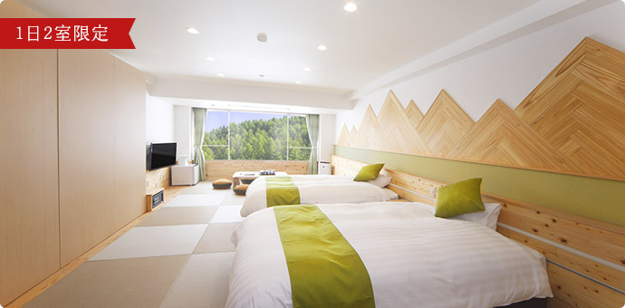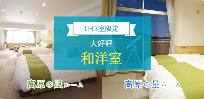 1日3ルーム限定!!高原ならではの雰囲気を感じる事の出来る木素材等を活用した禁煙和洋室のお部屋です。