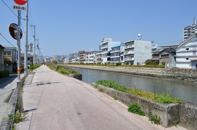 江ノ口川の土手には遊歩道が整備されていて気持ちのいい散歩が楽しめます。