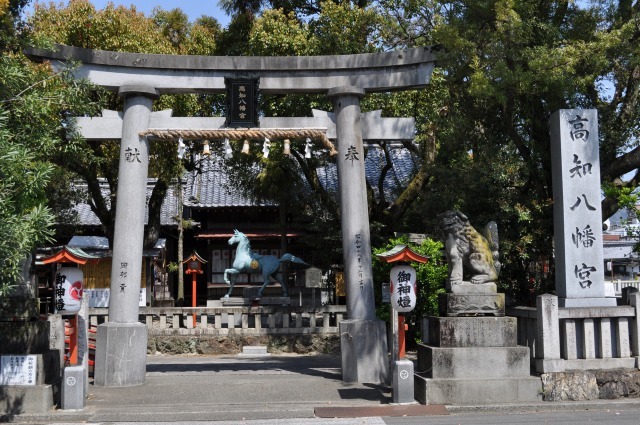 | 山田橋を渡って右に入ると、高知八幡宮。夏はお祭り、お正月は初詣でにぎわいます。 |