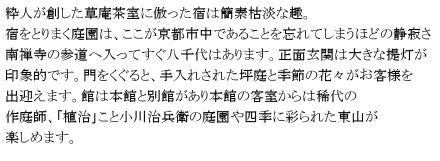 16畳客室半露天庭園風呂・トイレ付き 全室分煙・WiFi・AppleTv完備。 【階数】一階 ★こんなお客様にオススメ ●特別な京都を過ごしたい。 ●貸切風呂に家族で入りたい。 ●6名様以上の二世代旅行に。 ●木造の日本旅館を体験したい。 ●海外の友人に紹介したい。 【人数】2人〜6人 ※小さい画像にマウスを乗せると拡大表示します