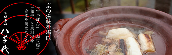 市中にありながら、東に南禅寺、西に平安神宮を配し古の京文化が現在も脈々と息づく東山の麓に佇む八千代。 古の粋人が創した草庵茶室に倣った宿は簡素枯淡な趣を持ち、 宿をとりまく池泉山水庭園が市中であることを忘れ静寂な時へと誘います。 ゆっくりと高野檜の風呂で疲れを癒し自然と人間が織り成す美を存分に味わってください。