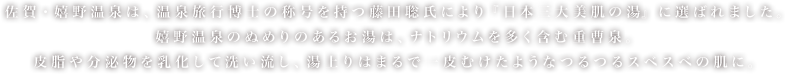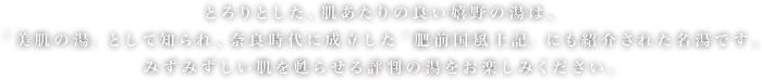 • 泉質ナトリウム-炭酸水素塩・塩化物泉 無色透明のなめらかな湯ざわり