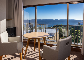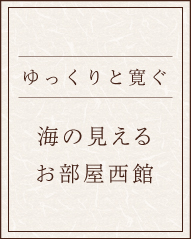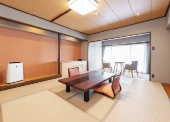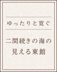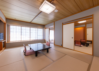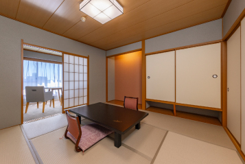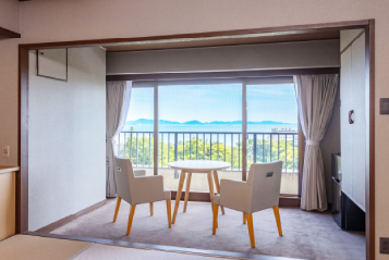 洋室の応接間と、和室2部屋付きのお部屋です。 広々としたお部屋から三河湾を眺め、贅沢なひとときをお過ごしください。