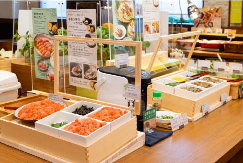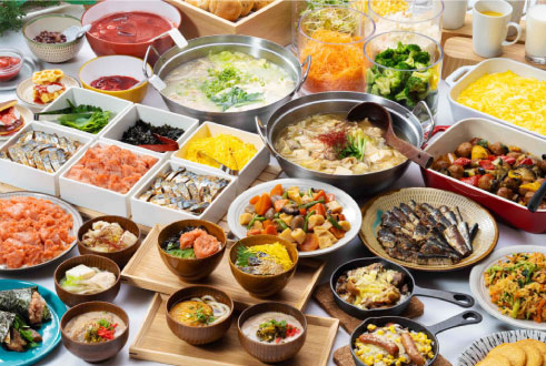 サラダにおばんざい、博多コーナーなどいろんなおいしい朝ごはんをお楽しみいただけます。