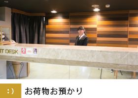 ![]() フロントロビーにてチェックイン前やチェックイン後もお荷物をお預かりします。ビジネスや観光に身軽に行動されたい方に最適です。 |