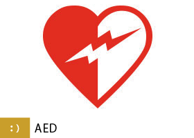 ![]() 万一の事態が発生した時のためにAEDを当館にご用意してあります。 |