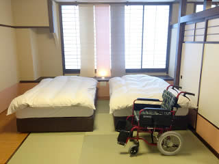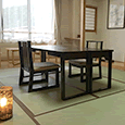 お部屋の座卓をテーブルセットに変更できます。座布団ではなく、椅子がよい場合は、あらかじめ交換いたします。車いすのままでも寛げます。予約時にお伝えください。