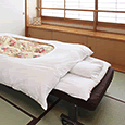 和風旅館には珍しい簡易ベッドをご用意。いつでも横になれて、簡単に立ち上がれるのが好評です。