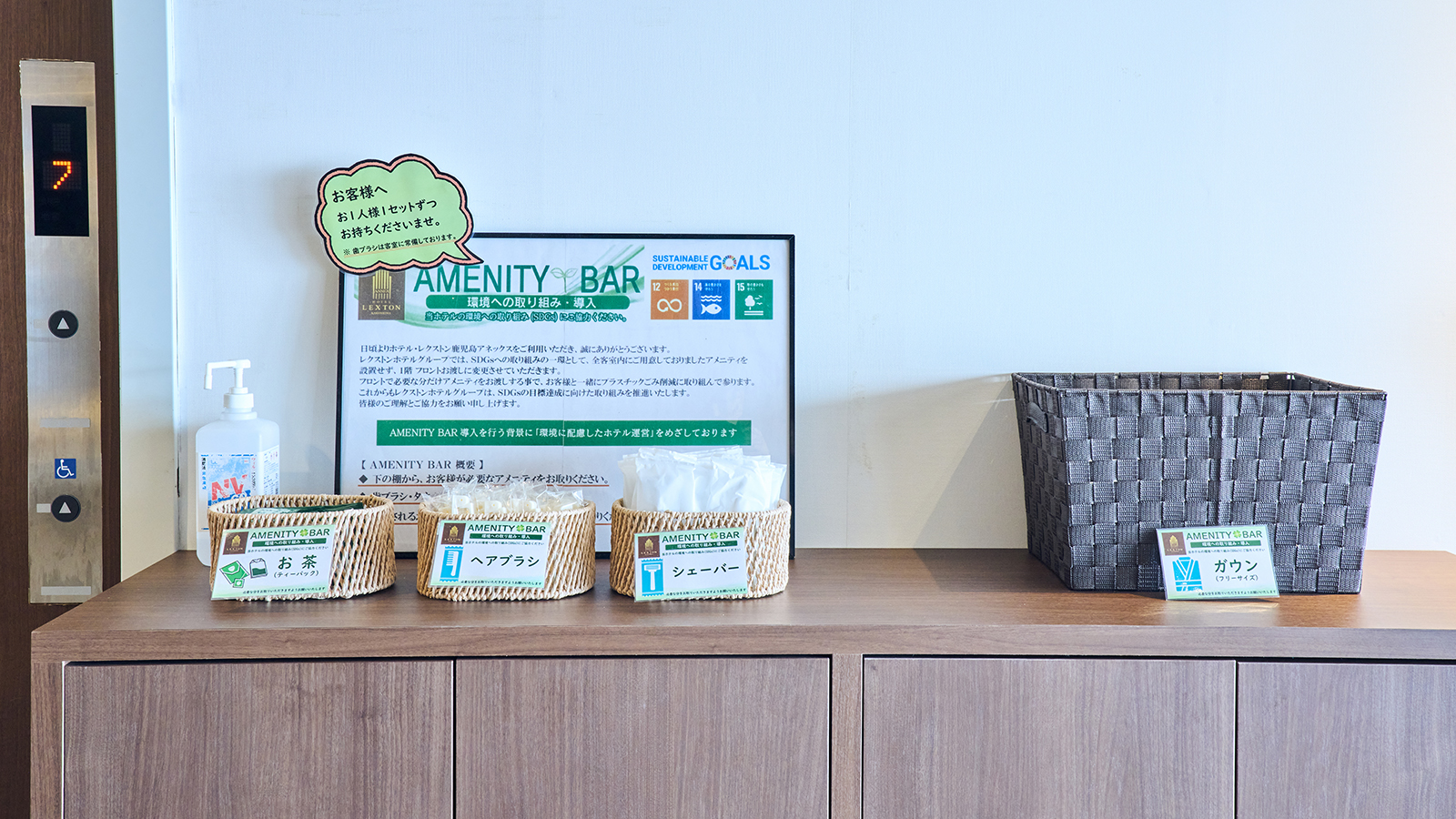 - ※備品に関しましてはロビーのアメニティーバーのにてご提供しております