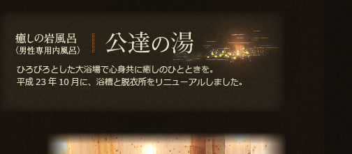 初代館主、伴対馬守忠実(ばんつしまのかみただみつ)から先祖代々守り育ててきた名湯をごゆっくりお楽しみください。