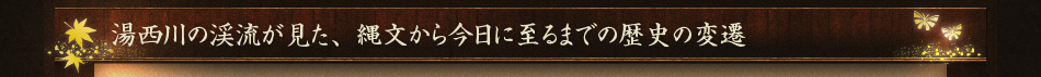 湯西川には先住として16000年〜3000年前といわれる縄文時代の、狩猟採集で平和に暮らしていた古代人の遺跡が多数発掘されております。川の流域には文化が生まれるといいますが、湯西川の歴史も縄文の時代から平家一門の集落に至るまで、川の流域が生活文化を育んできたことが伺えます。縄文の民達もこの深山清流沿いの風景にさぞ癒されたことでしょう。縄文時代にこの湯西川に住みついた祖先の残した土器は、湯西川下地区の開発途上で発掘されたもので、湯西川川戸地区の「水の郷」に展示されています。