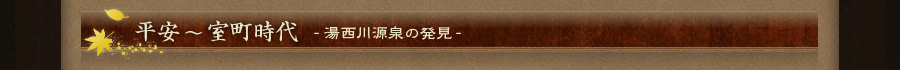 1573年(天正元年)、平忠実公より11代目の伴対島守忠光(ばんつしまのかみただみつ)が、先祖と同様、雪の日にこんこんと湧き出る温泉と多数の宝物を発見。