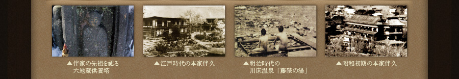 都より逃れてこの深山渓谷で強くたくましく生き、温泉を守り、永きにわたり人々の心身を癒し続けてきました。その本家伴久の歴史の一部を、湯西川地域の歴史とともにご紹介いたします。