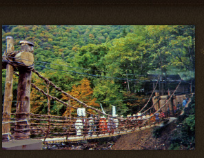 お蔭様で、このかずら橋は「追っ手から逃げる橋」から「結ばれの為の橋」というおめでたい「縁結びの橋」になりました。川を挟んで、両岸に位置する当館にお泊りのお客様も、毎晩夕べの宴処にこの「結ばれの橋」をお渡りになります。