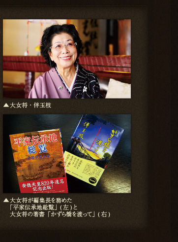伴久の24代大女将は全国平家会の終身名誉会長など、平家にまつわる様々な活動を務めさせていただいております。