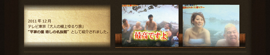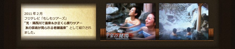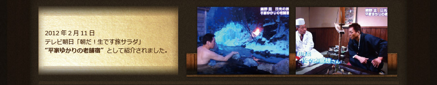 平忠実(平忠房の隠れ名)による湯西川源泉の発見から800年の時を経て、現館主は25代目にあたり、350余年の商いを継承しています。
