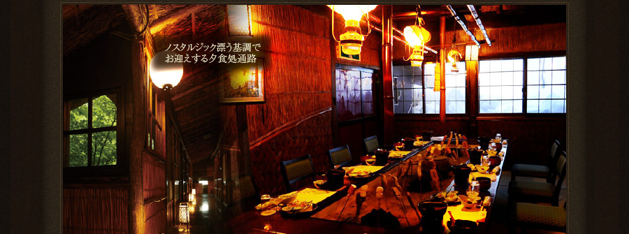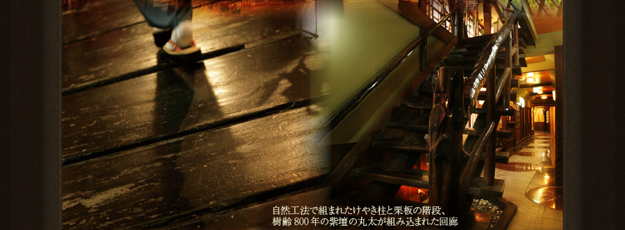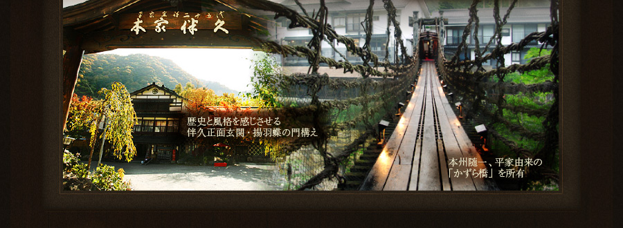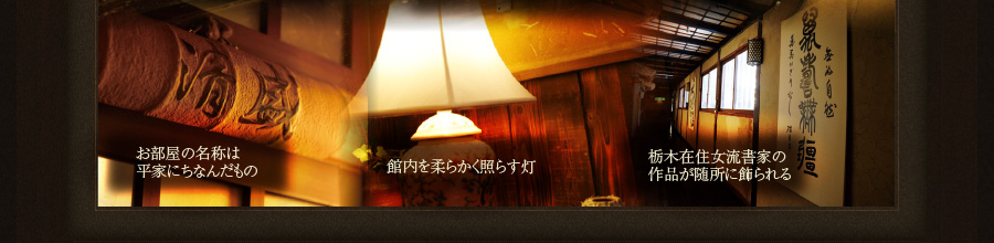 伴久の館内は、そこかしこに源平絵巻きを思わせる雅なしつらえがほどこされています。