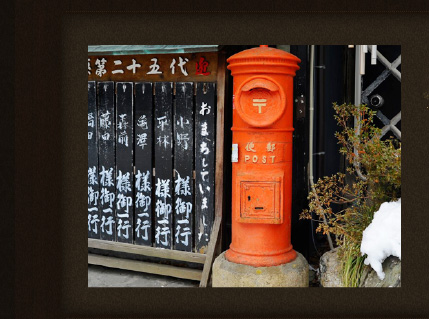 昔懐かしいこのポストは今でも現役。本家伴久ではポストカードもご用意しております。旅の思い出を"はなちゃん"に託してみませんか?きっと良い思い出となってくれることでしょう。