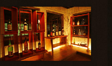 こだわりの逸品のお酒を揃えた、大矢石で作られた酒棚には、当館が厳選した銘酒が並んでいます。お客様にお好きなものをご自由にお選びいただいております。