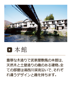 木々のぬくもりに囲まれ、豊かな温泉に心身を洗い清め、美味しい料理と人間同士のふれあいに、明日への活力がよみがえる…本家伴久自体が、お客様にとって一つの「パワースポット」となれるよう、日々心をこめて、訪れていただいたお客様のおもてなしに努めて参ります。