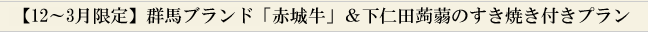 群馬ブランド「赤城牛」と群馬名産「下仁田蒟蒻」に加え、地元の大自然でのびのびと育てられた「青山の玉子」など、可能な限り地元の食材を使った、群馬県おもてなし料理「すき焼き」と、つまごいビュッフェを一緒に楽しむ冬のグルメプランです!