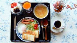 ■AM 8:30〜AM11:00までの間に皆様おそろいになってからのスタートです。前日の夜に時間指定されて下さるよう、お願いいたします。 朝食は洋食をご用意させていただいています。 |
