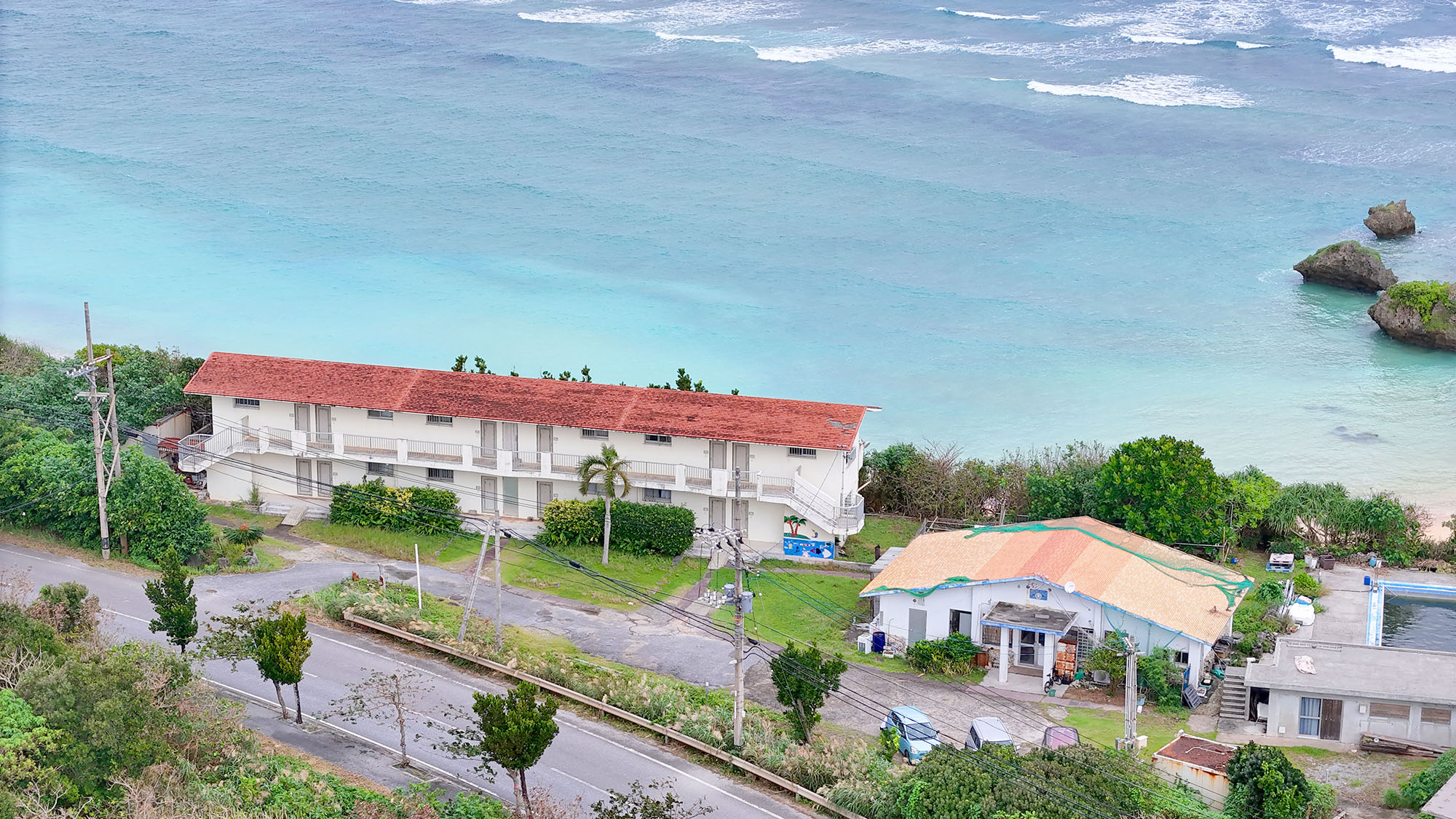 全室オーシャンビューでプライベートビーチがあり、大海に浮かぶ島々が部屋からみえます。