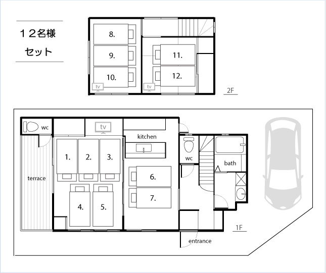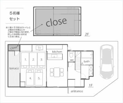 2F(*2階部分は一部のプランを除き、6名様以上のご宿泊から解放となります。)