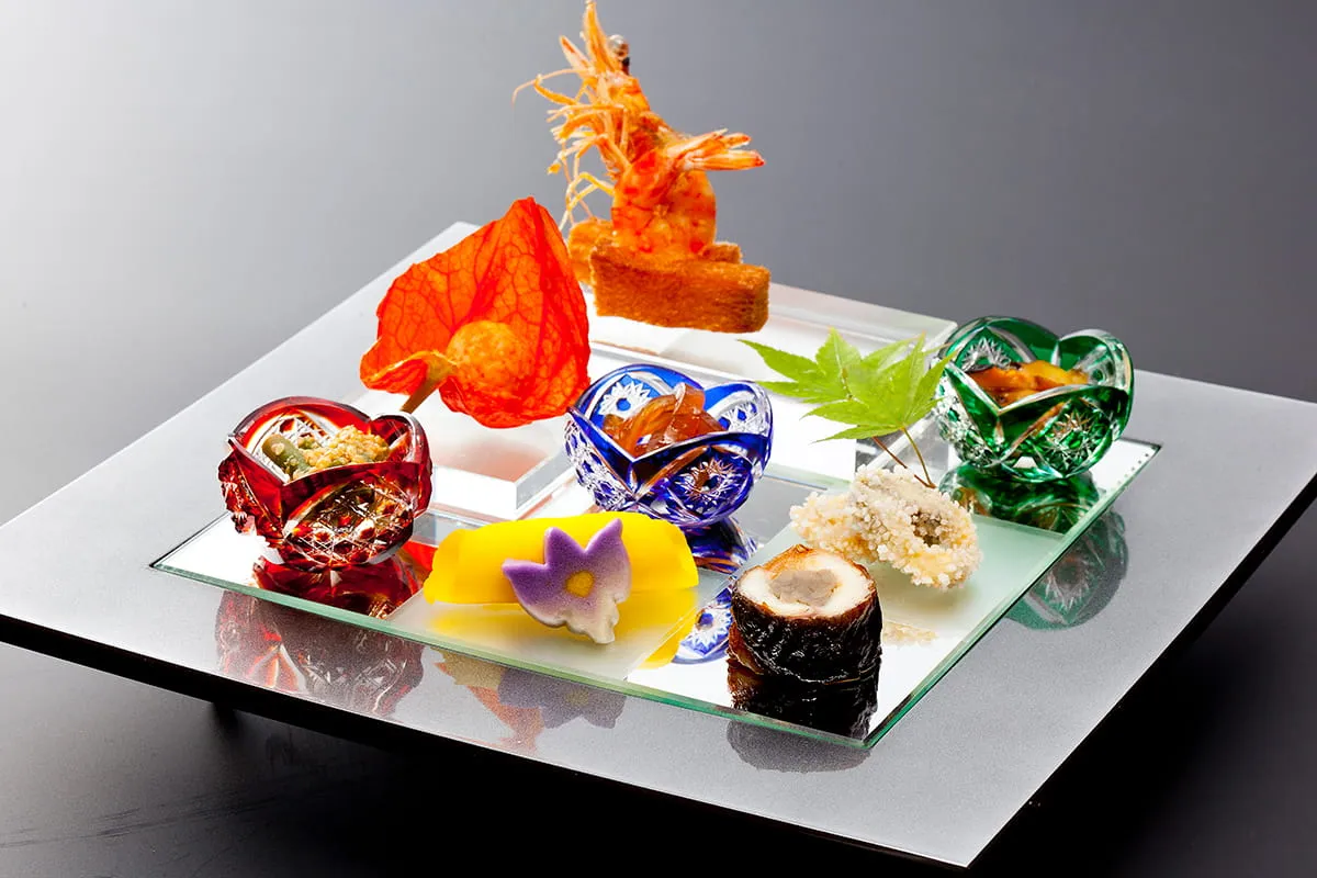 食膳を華やかに彩る、四季折々の素材が魅力。伝統の技とおもてなしの心で仕上げ、