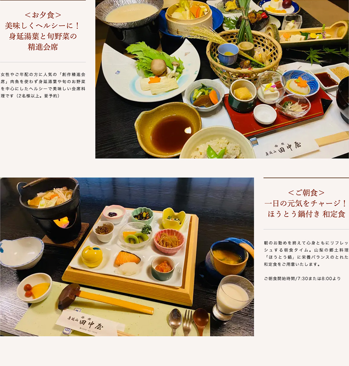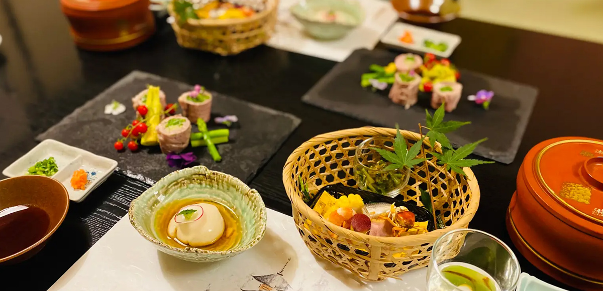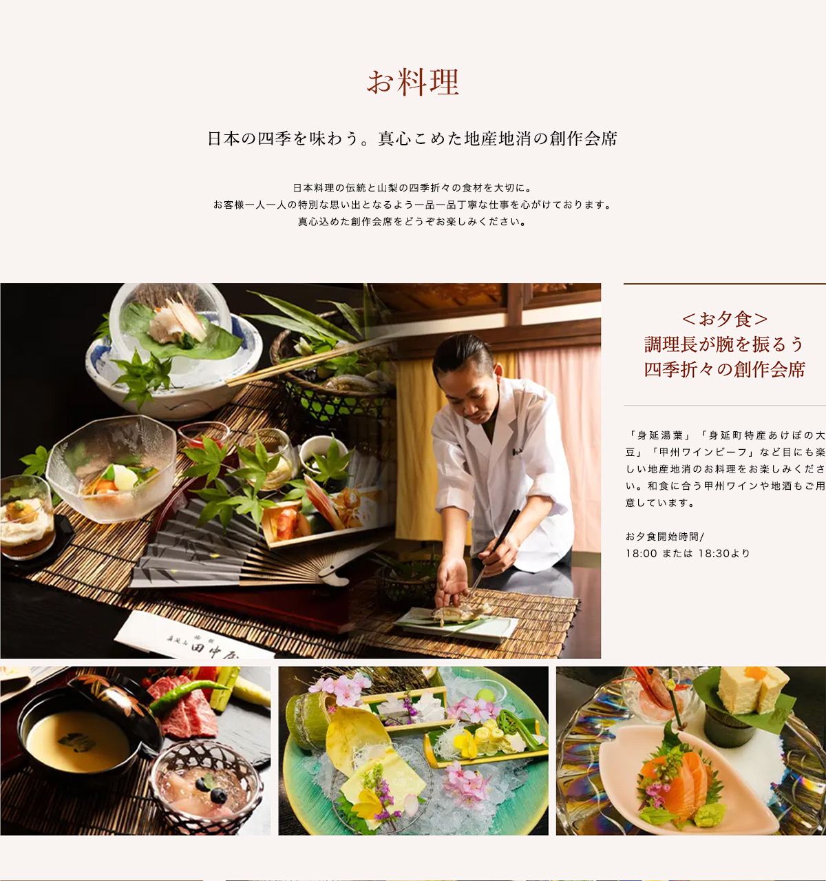 季節の旬彩「身延会席」山梨の地産地消を心がけ旬の食材を使った創作会席です。
