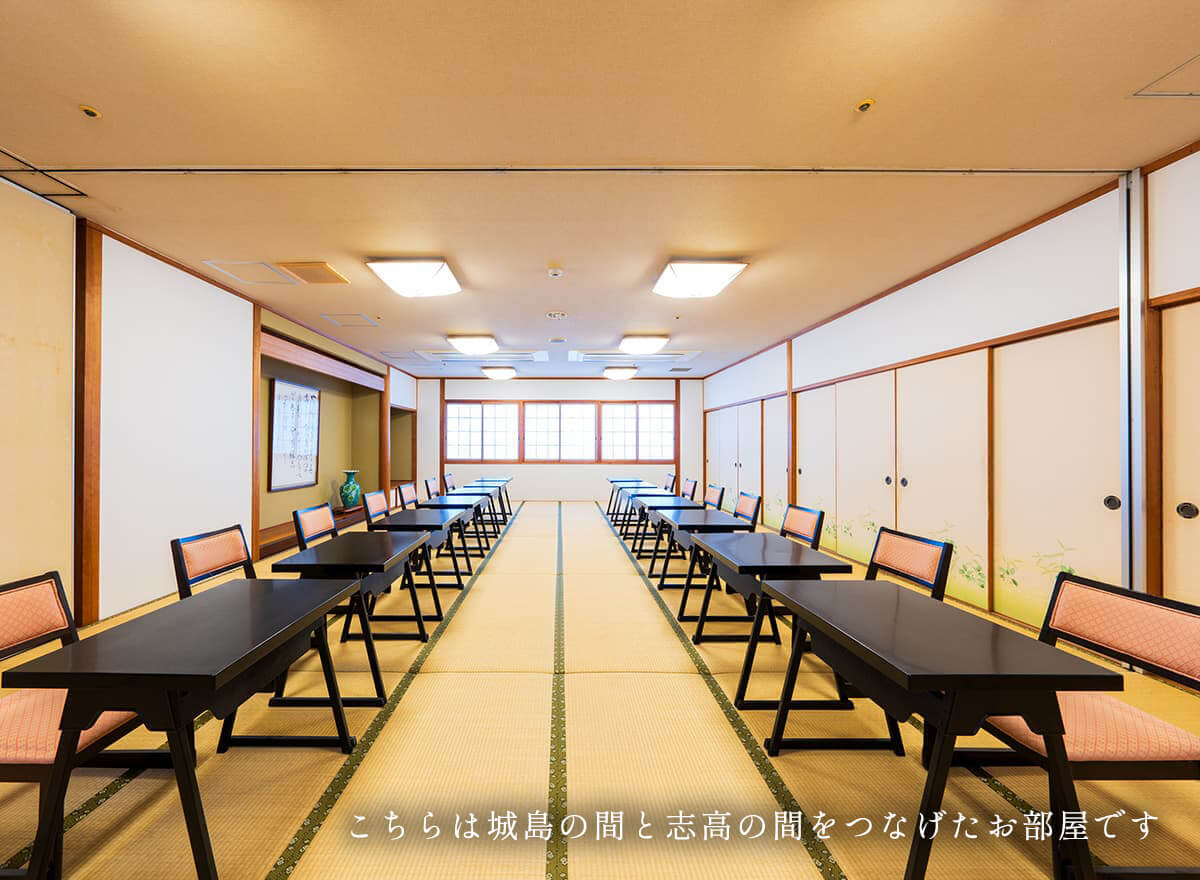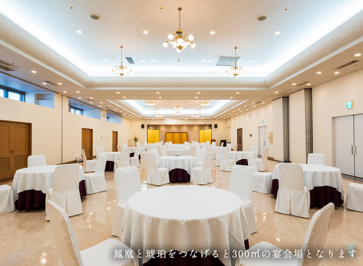 鳳凰だけでも170㎡琥珀と合わせる事で300㎡の大宴会場となります