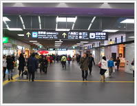 JR京都線(在来線)西口または新幹線中央口を出ると南北自由通路があります。南へお進み下さい。