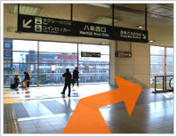 つきあたりが八条西口という出口です。右側の階段を降りて下さい。
