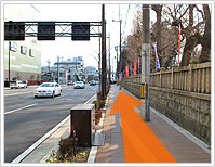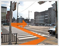 続いて右側の横断歩道をお渡り下さい。