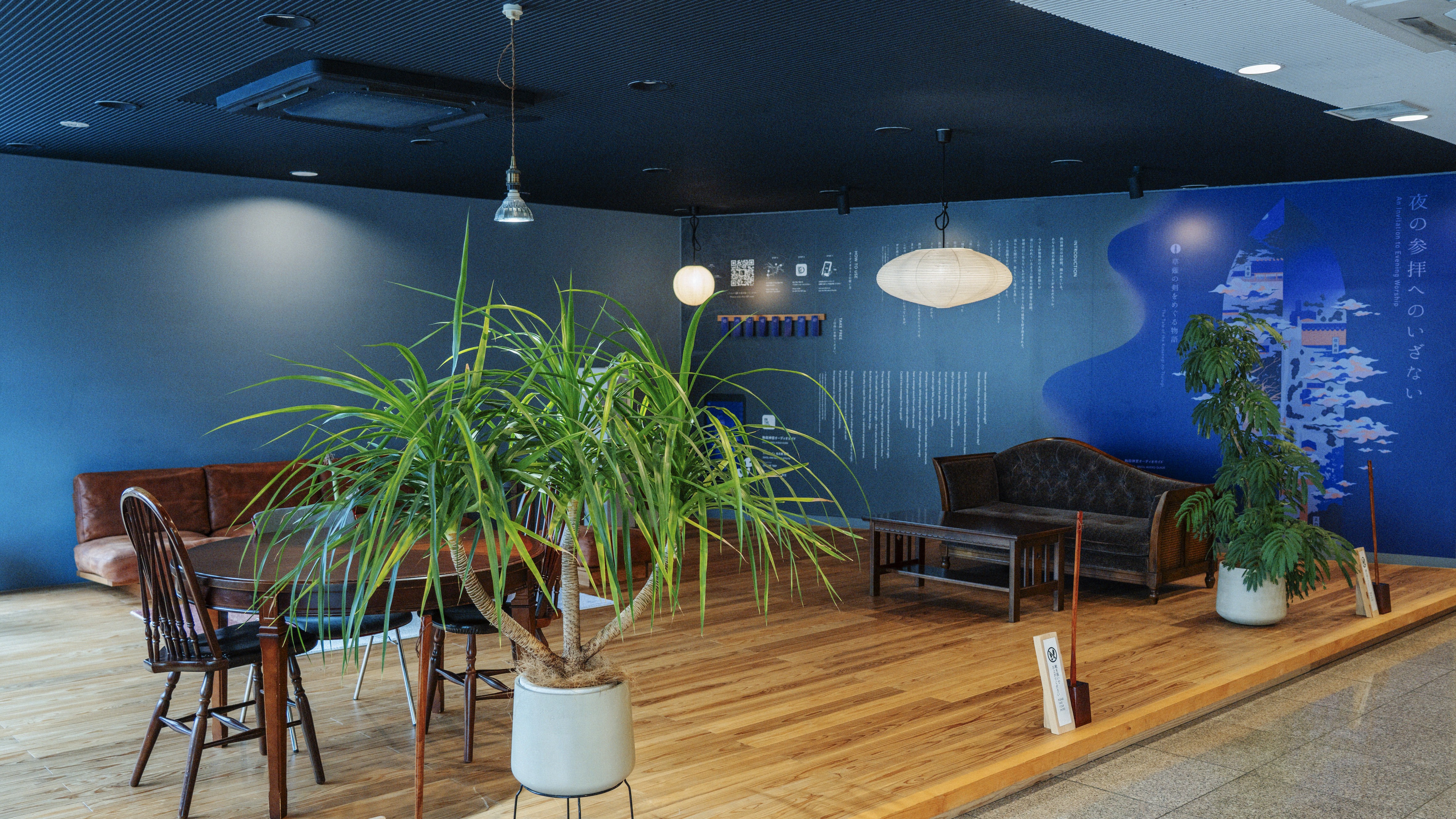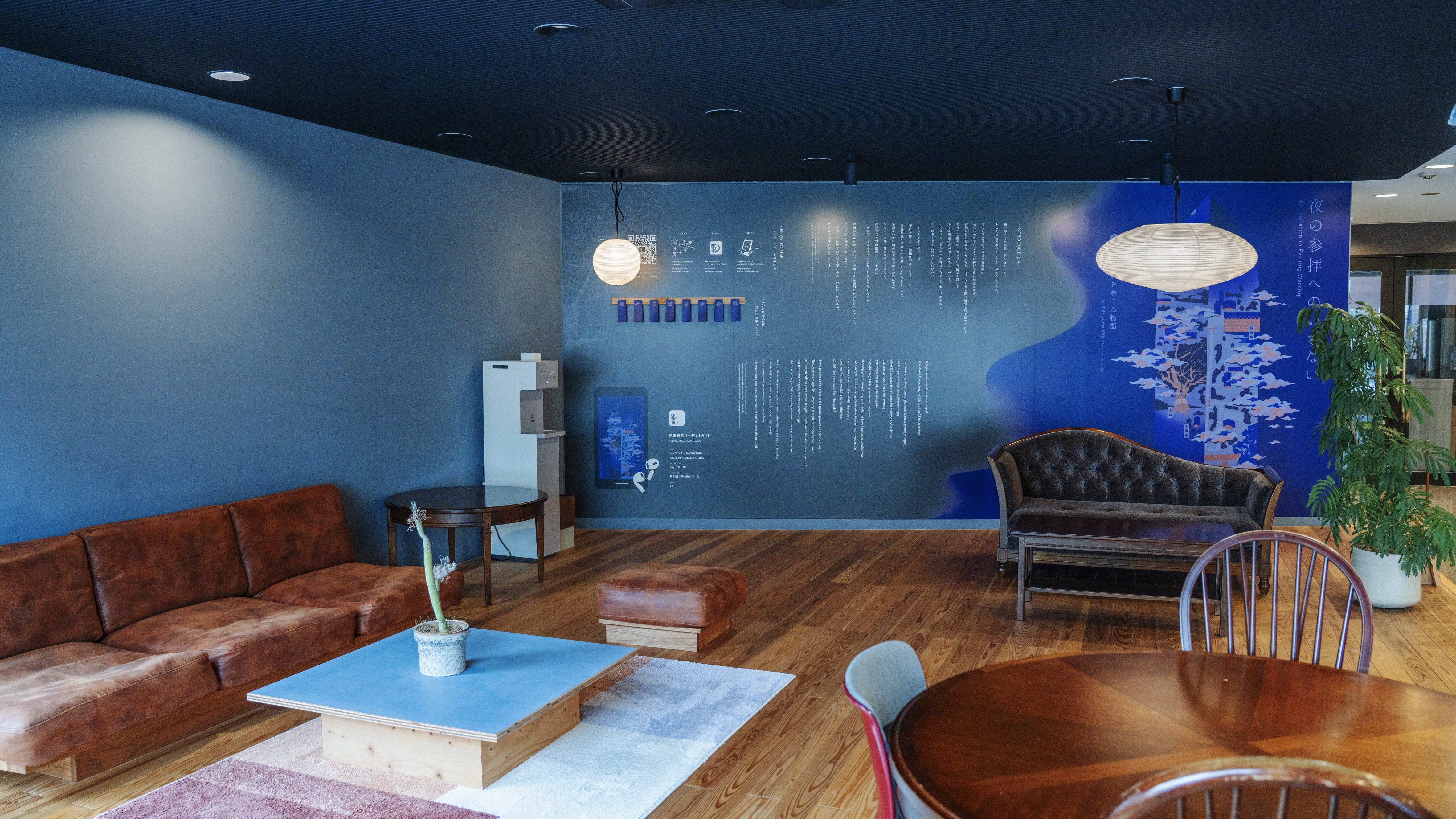靴を脱いで寛ぐロビー