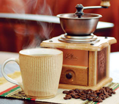 本格的にコーヒーを愉しみながら寛ぐ 手挽きのミルとコーヒー豆をお部屋に備えつけており、いつでもお好きな時間に本格的なコーヒータイムをお愉しみいただけます。また、グラスを洗ったり、水を使用するときに便利なミニキッチンもご用意しております。