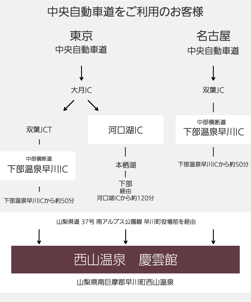 住所:〒409-2702 山梨県南巨摩郡早川町西山温泉 慶雲館