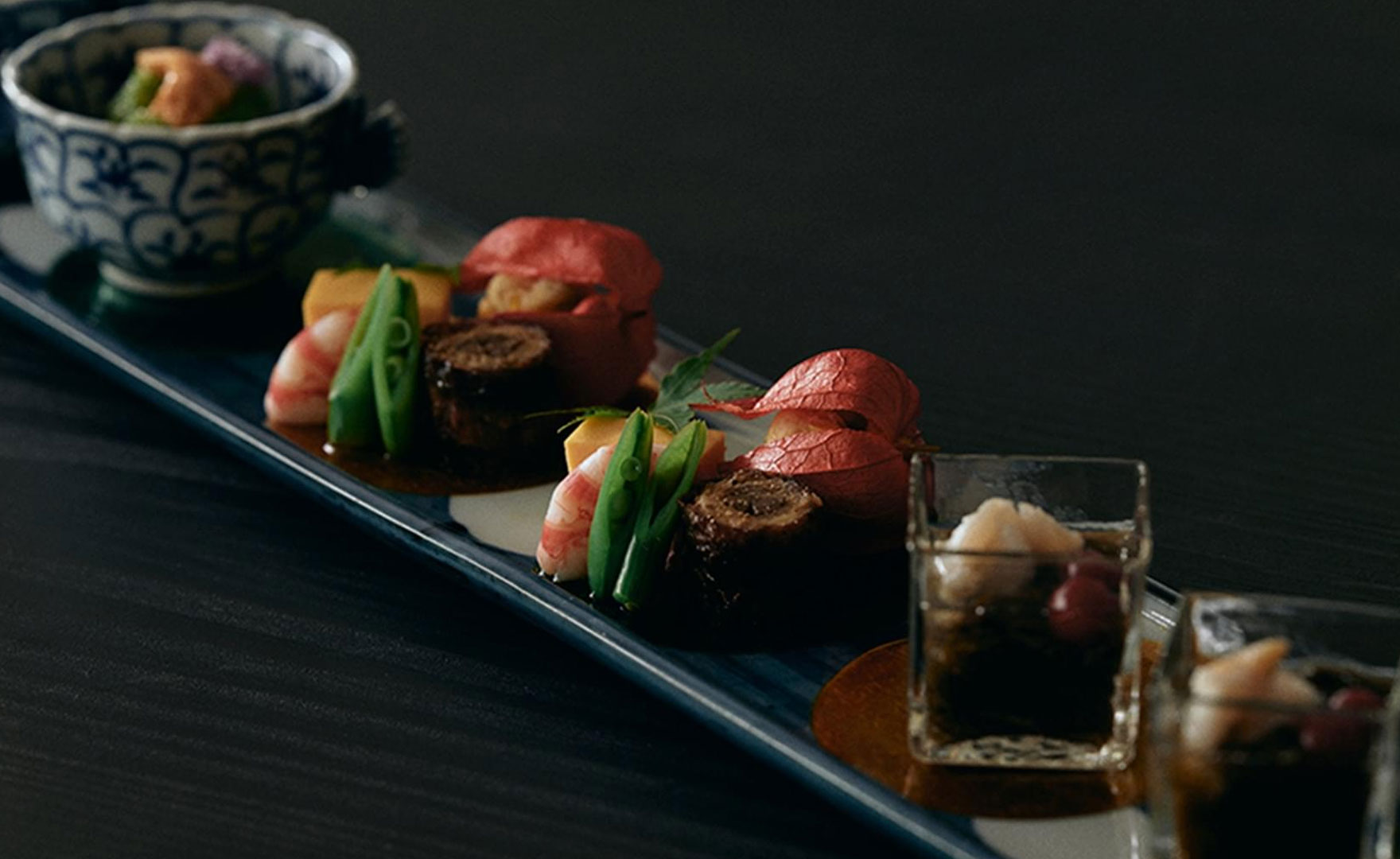 旬の献立と粋な器から、石川の風土が詰まった一皿を振る舞います。本格懐石に加え、お客様一人ひとりの趣向で選べるアラカルト懐石や、多彩な飲み物とのペアリングもご提案しております。日本食の伝統と哲学に基づき、現代の創意を取り入れた新しい食体験を。